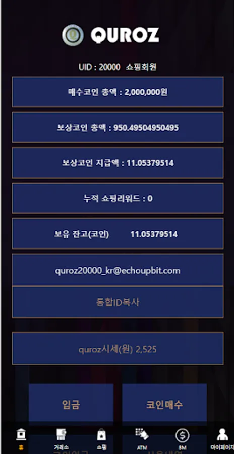 This is an app that users can directly manage in relation to the QUROZ cryptocurrency listed on the ECHOUPBIT market.
