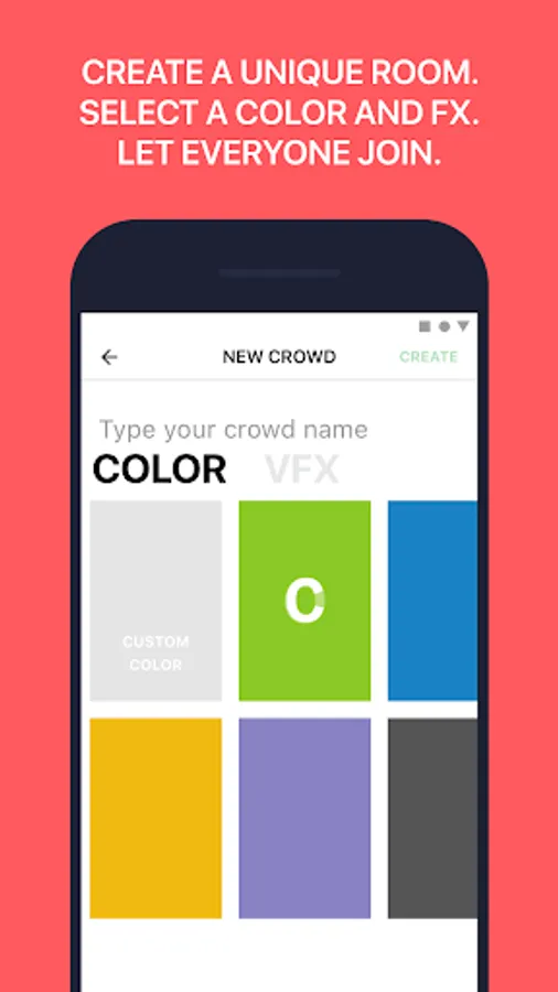 COLOR CROWD turns your screen into a colored surface that can be synchronized with other users to create a ColorCrowd, a colorful performance or vibrant art using only your phone.