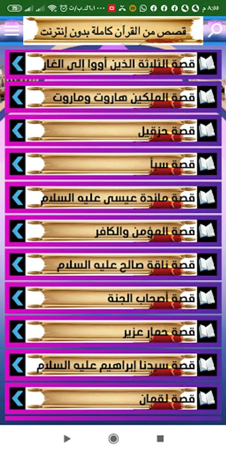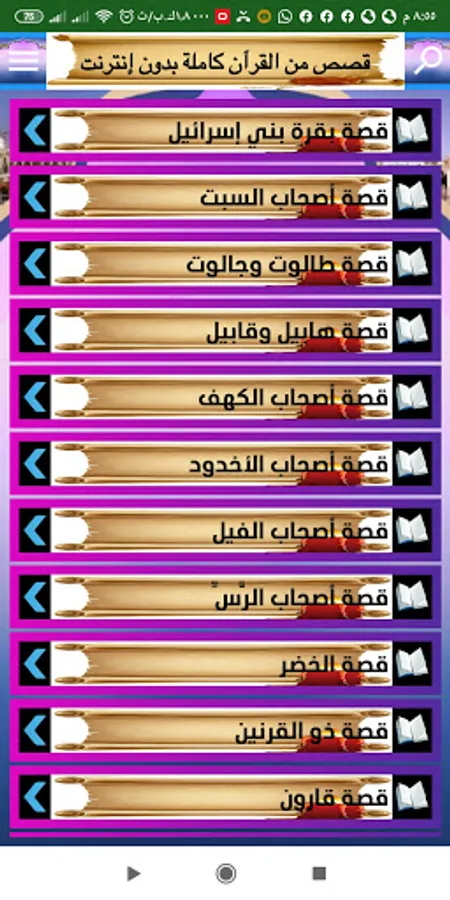 An application for the stories of the Noble Qur’an for Android devices, as it contains 29 of the most wonderful and prominent stories of the Noble Qur’an, free of charge and without the Internet.