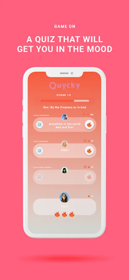 Create your profile - add a cute photo of yours and write your name - and then you will be directed to select your game mode, aka the temperature at which you’re playing. All questions are related to sex and body wellness so if you’d like to start things slowly select the Curious Mode; if you’re feeling kind of frisky why not trying the Hot Mode? Or if you’d really like to turn things up then, definitely, go Spicy all the way! After selecting your game mode, you will be joined in one of our Quiz Rooms where you and three other players will reply LIVE to our sexy questions.