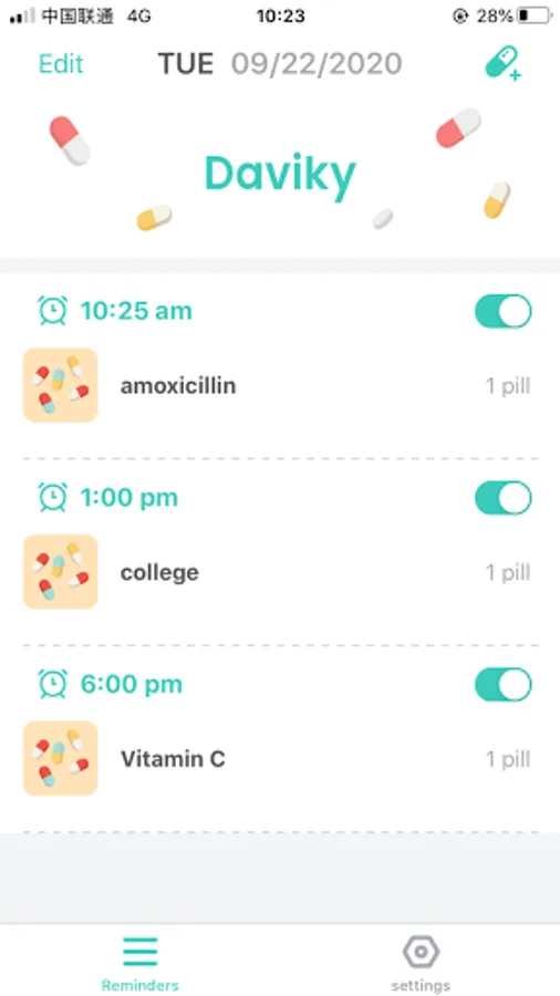 The Daviky's APP can set multiple medicine time, and its reminder function allows to remember every moment of medicine time.