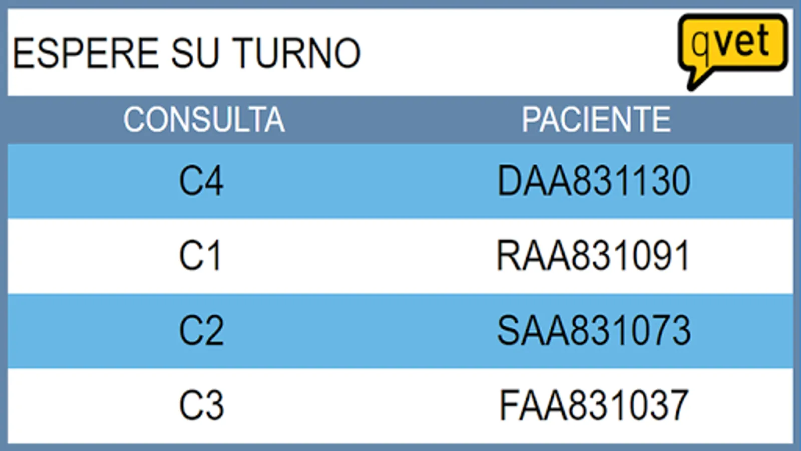 By "Shifts and Screens QVET" We can optimize time and improve the image and organization of the center allowing you to assign shifts to patients and guide them through screens in waiting rooms, to offices where they will be cared for by professionals.