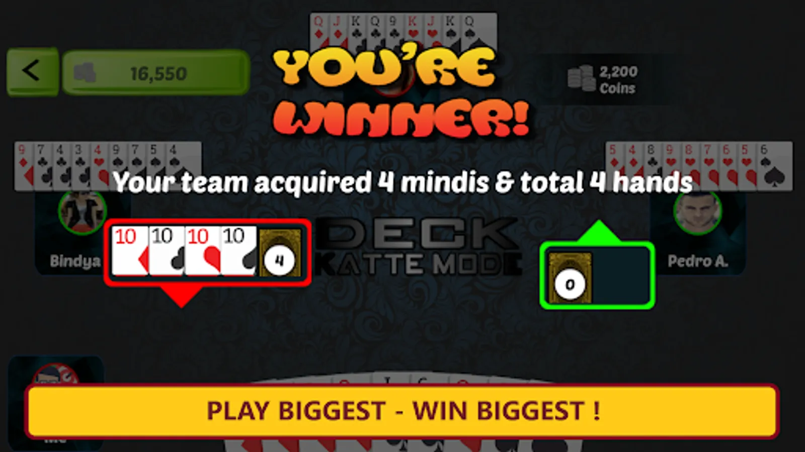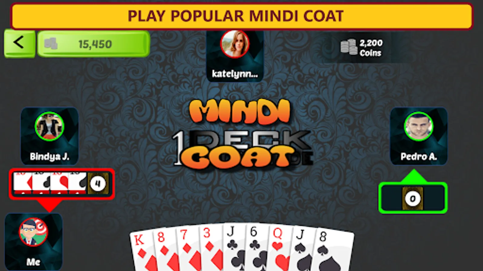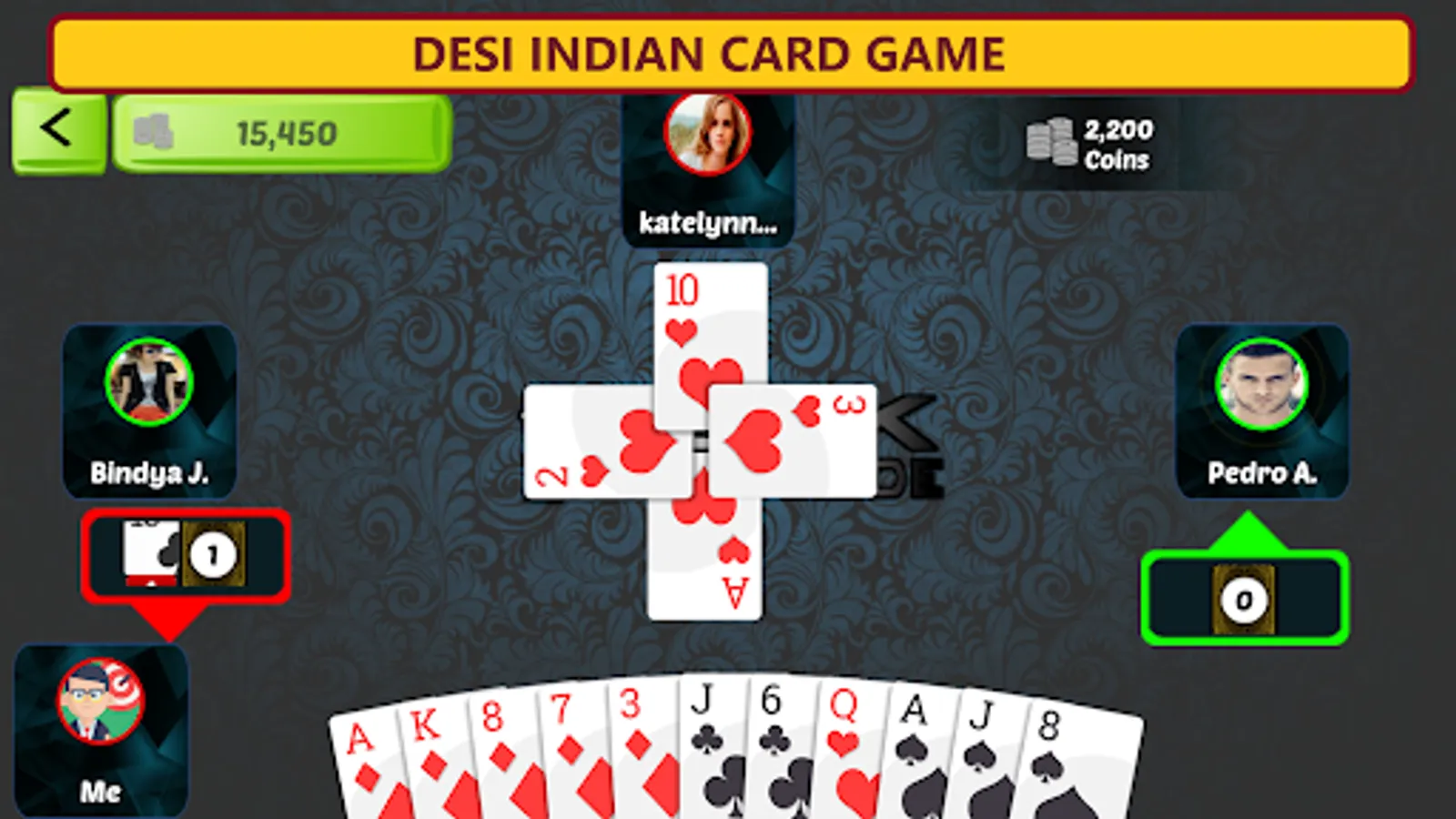 Desi Mindi is four-player partnership game, in which the object is to win tricks containing tens, is played in India.There are four players in two teams, partners sitting opposite.