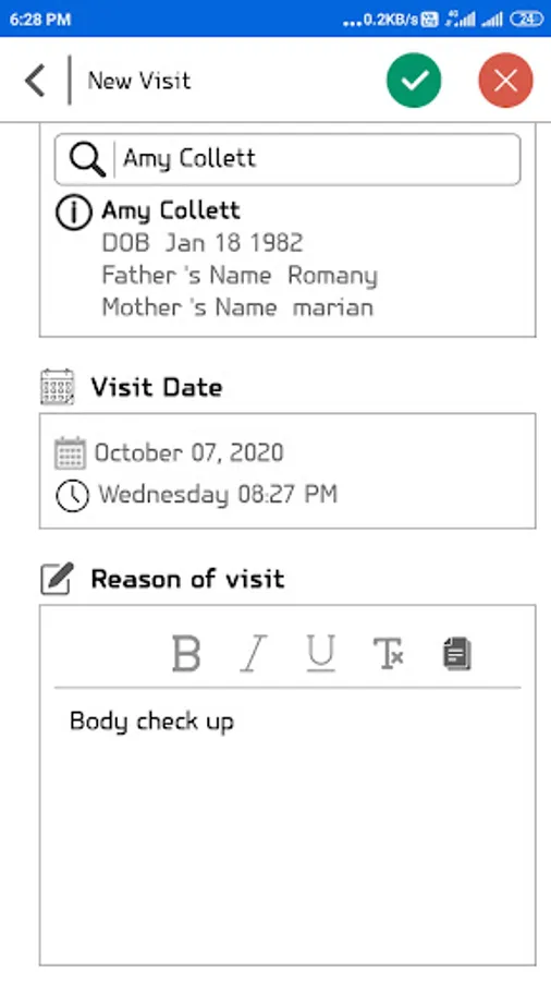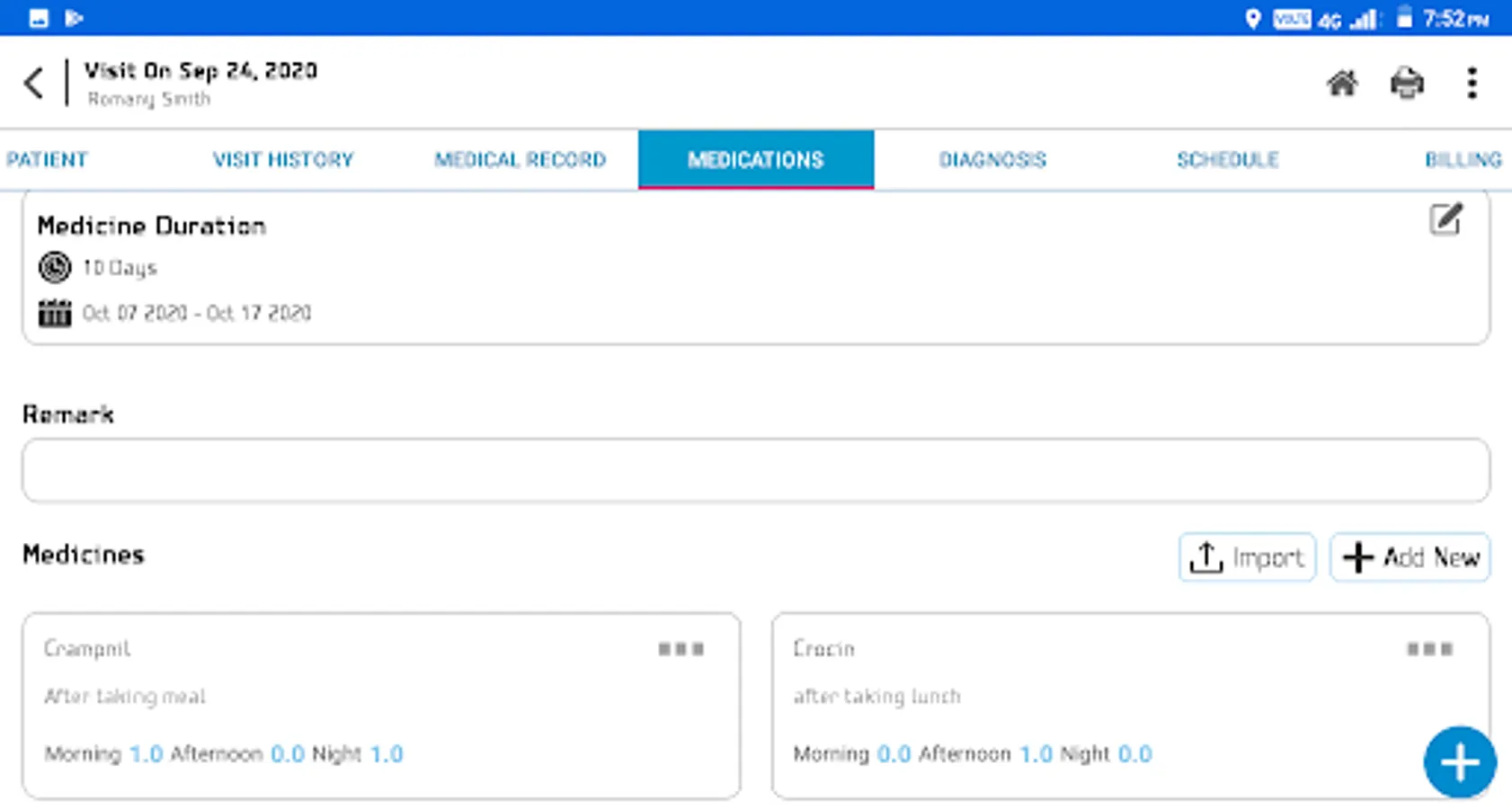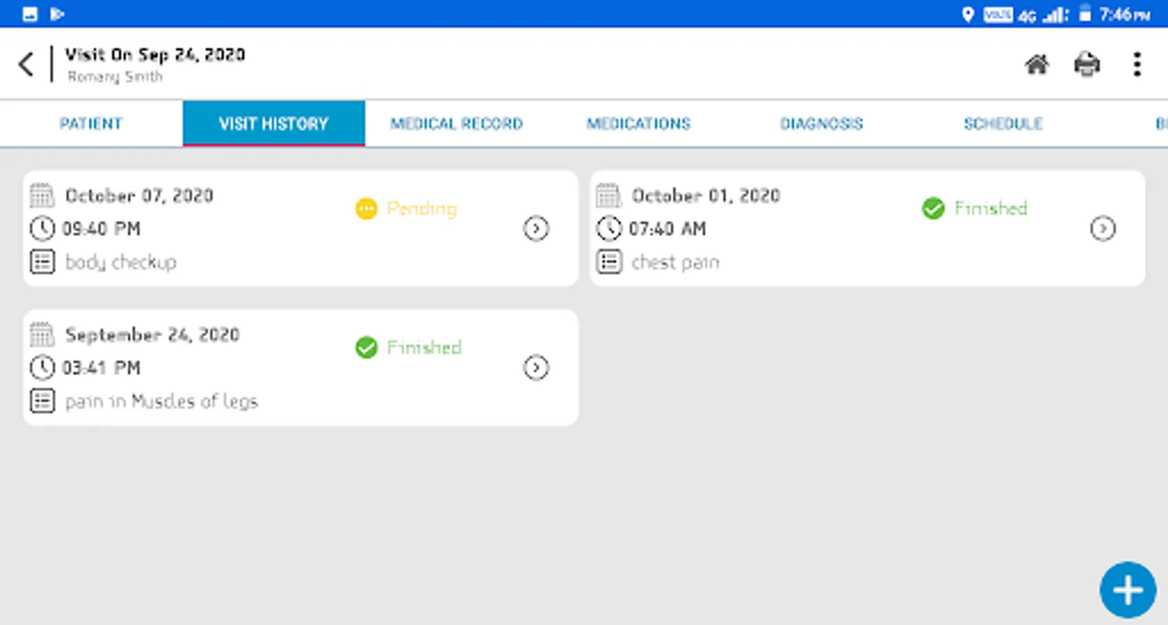 Using Mr.Patient practice management app, you can manage all your patient records such as personal information, medical reports, medication, visit history, clinical notes, patient history, and other notes.