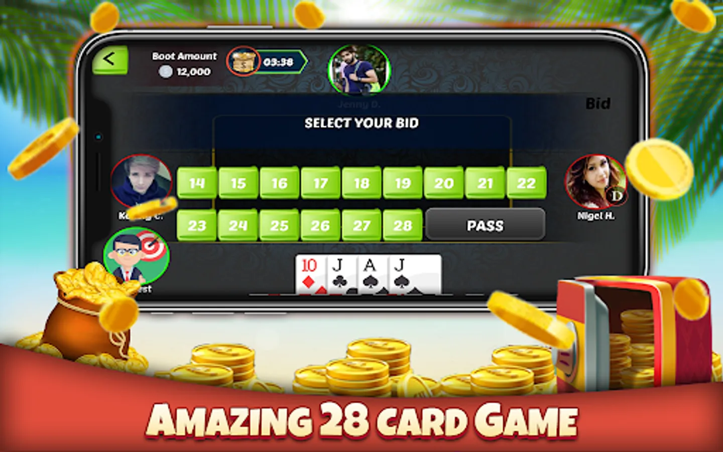 - Deal & Bidding are anti-clockwise. Cards are distributed in two(2) step by four(4) cards in each and every step. 28 Card Game Best Ever is make nines(9) card game 24 points bidder trump bridge.