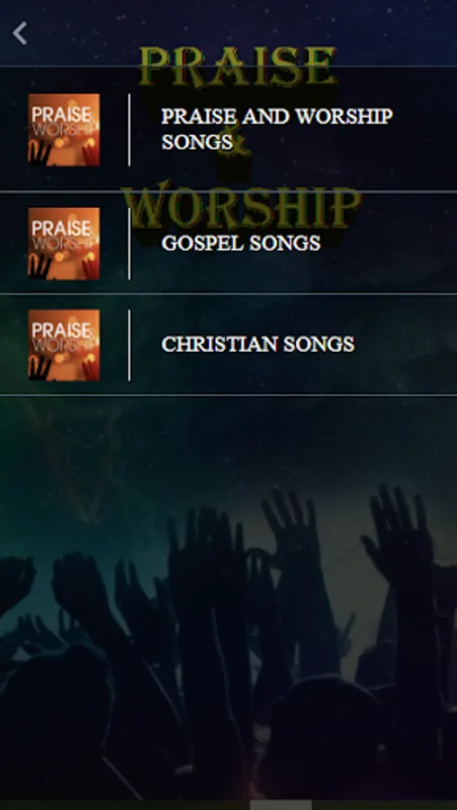 - Show playlists most popular listen and download with genres: Praise and Worship Songs, Gospel Songs, Christian Songs