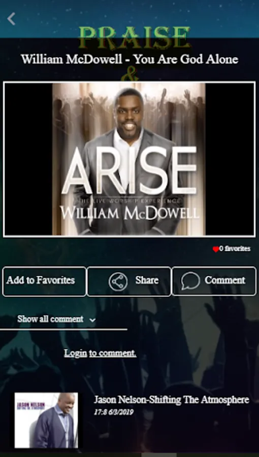 Praise and Worship Songs is a application is selected based on The Best Praise and Worship Songs, it is very simple and easy to use.This app has many kinds of Worship Songs, all tracks selected Worship Songs of the highest sound quality.