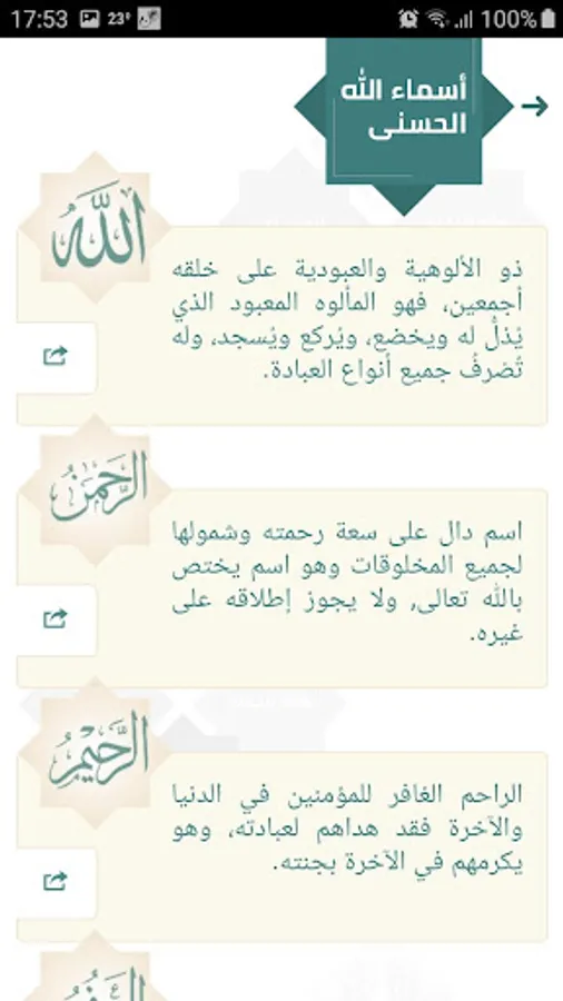 Al-Jawa Koran application supports other distinct features such as providing a special section for supplications, the most beautiful names of God and the interpretation of their meanings in addition to alert notifications that reach the user with the meaning of names with the ability to activate or deactivate the arrival of notifications to the user and many other benefits