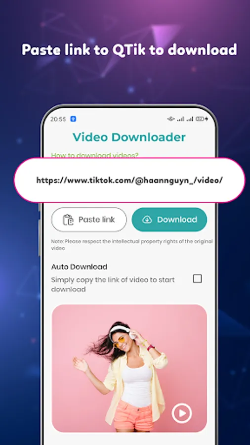 QTik TT Video Downloader is a tool to download videos no watermark from video sharing networks, not affiliated and not an official application of any social network or video sharing platform