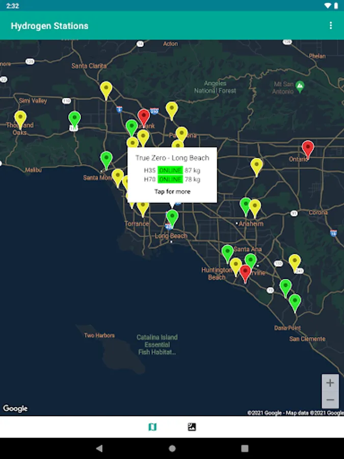 Find fueling stations for hydrogen fuel cell powered vehicles in the United States.