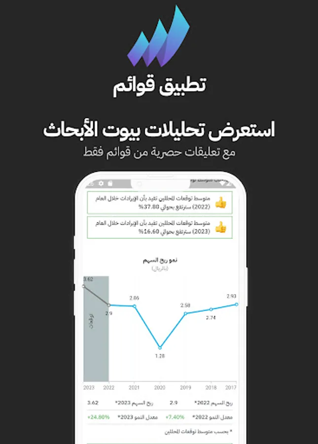 The tools available on Qawaem application enable you to conduct a deep analysis of the company to be closer to making a successful investment.
