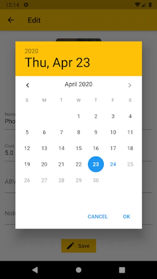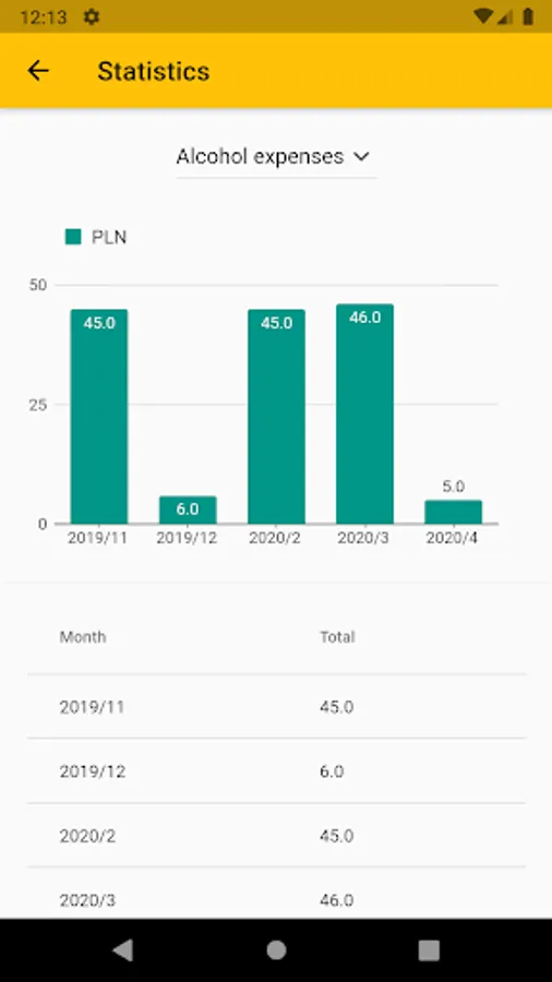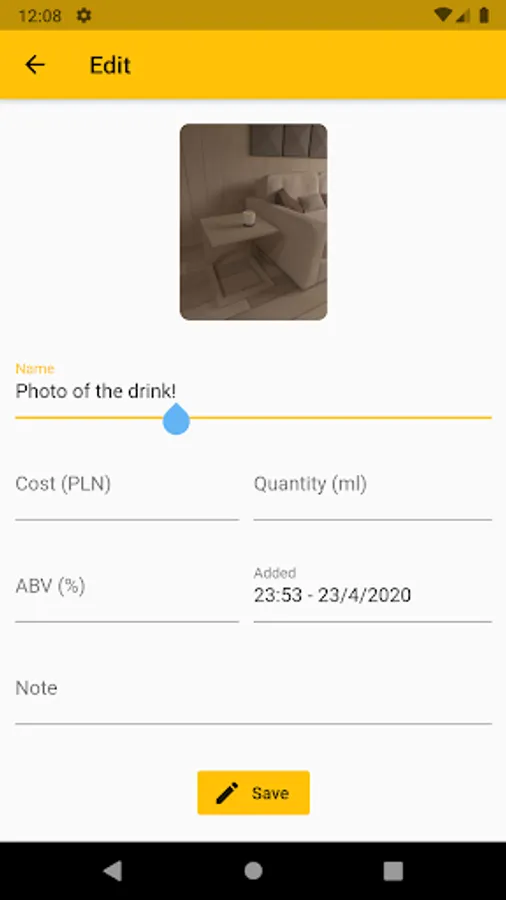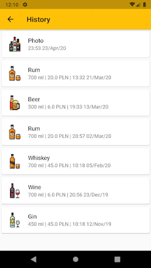 Your alcohol consumption is summed up in a simple view. There is a list of each alcohol you added with valuable information like quantity, cost, time of adding and notes.