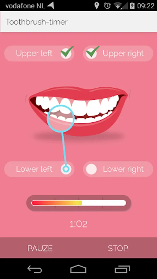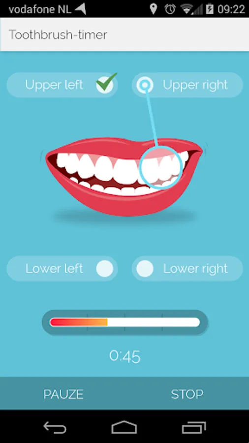 The app indicates clearly what part of your teeth you have to clean and how long you should do that. Quite easy right? After 2 minutes your teeth will be shiny and healthy.