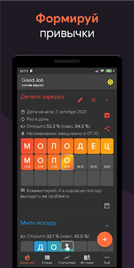 2. If you have not fulfilled the habit, then you either reset the progress and start again, or open the rest of the letters, but not open gray letters will remind that you should not skip the habit.