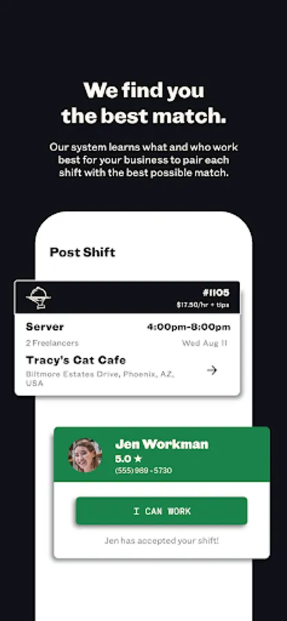 Our platform understands the intricacies of your business while AI technology matches your shifts to the most fitting freelancers.