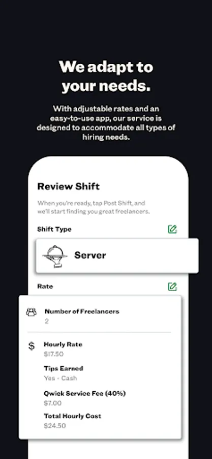 Qwick helps F+B businesses fill shifts with experienced freelancers that match their needs, empowering them to work more efficiently and staff smarter. As the professional platform at the heart of hospitality, we’re dedicated to the industry as your digital staffing resource.