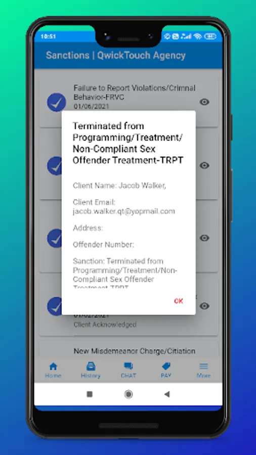 QwickTouch app is a remote check-in smartphone application that makes routine client reporting far more efficient while also greatly reducing the time it takes for officers and case managers to work their caseload. Clients download the app to their personal smartphone or tablet and use it to answer a series of questions related to their release terms as a way to self-report remotely.