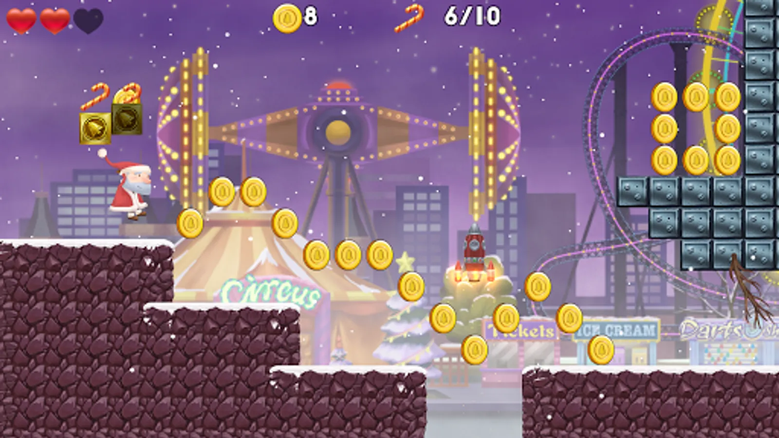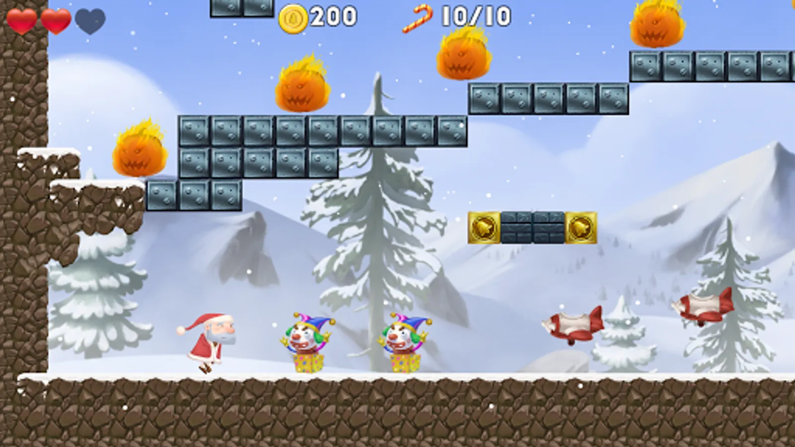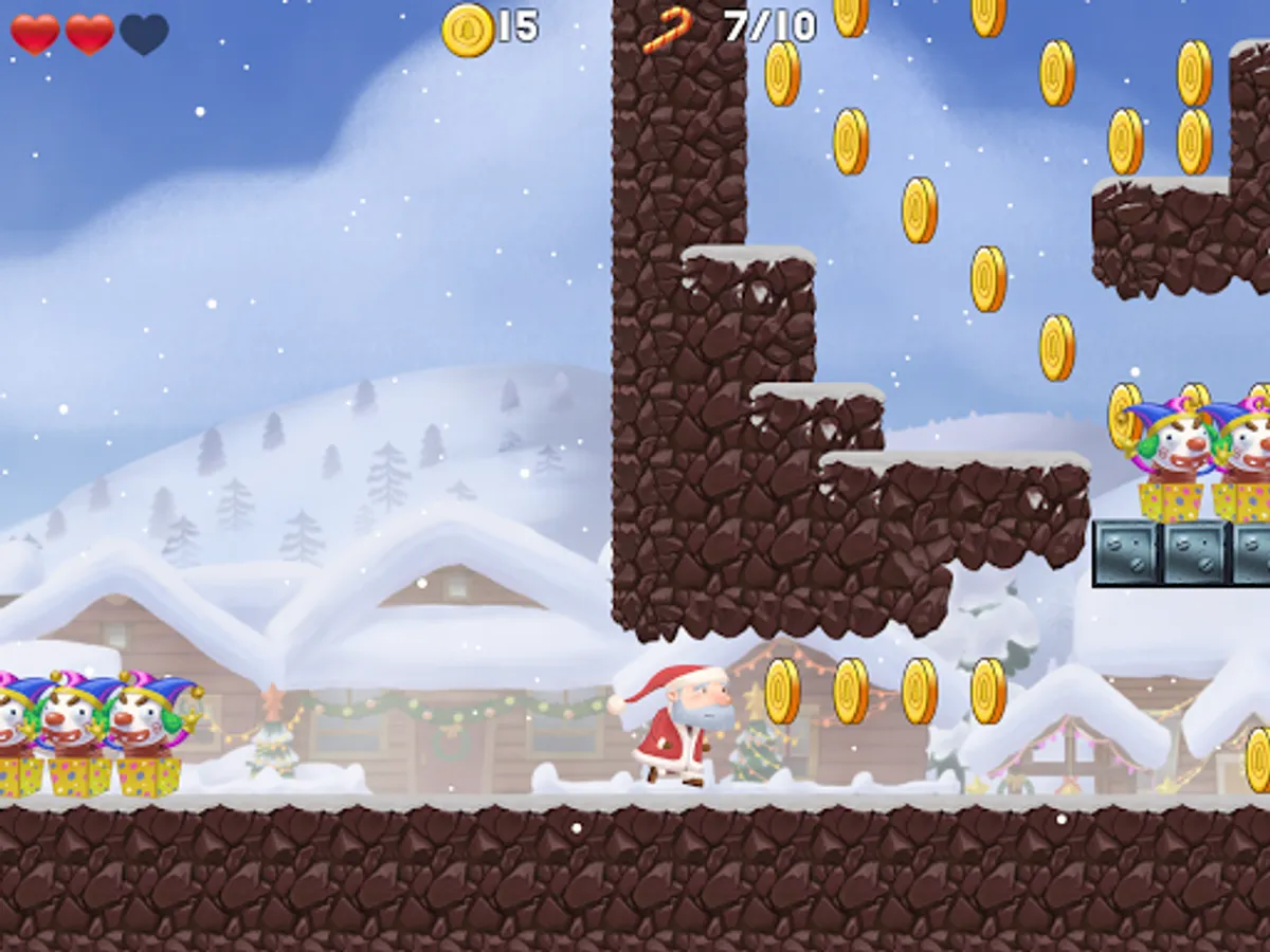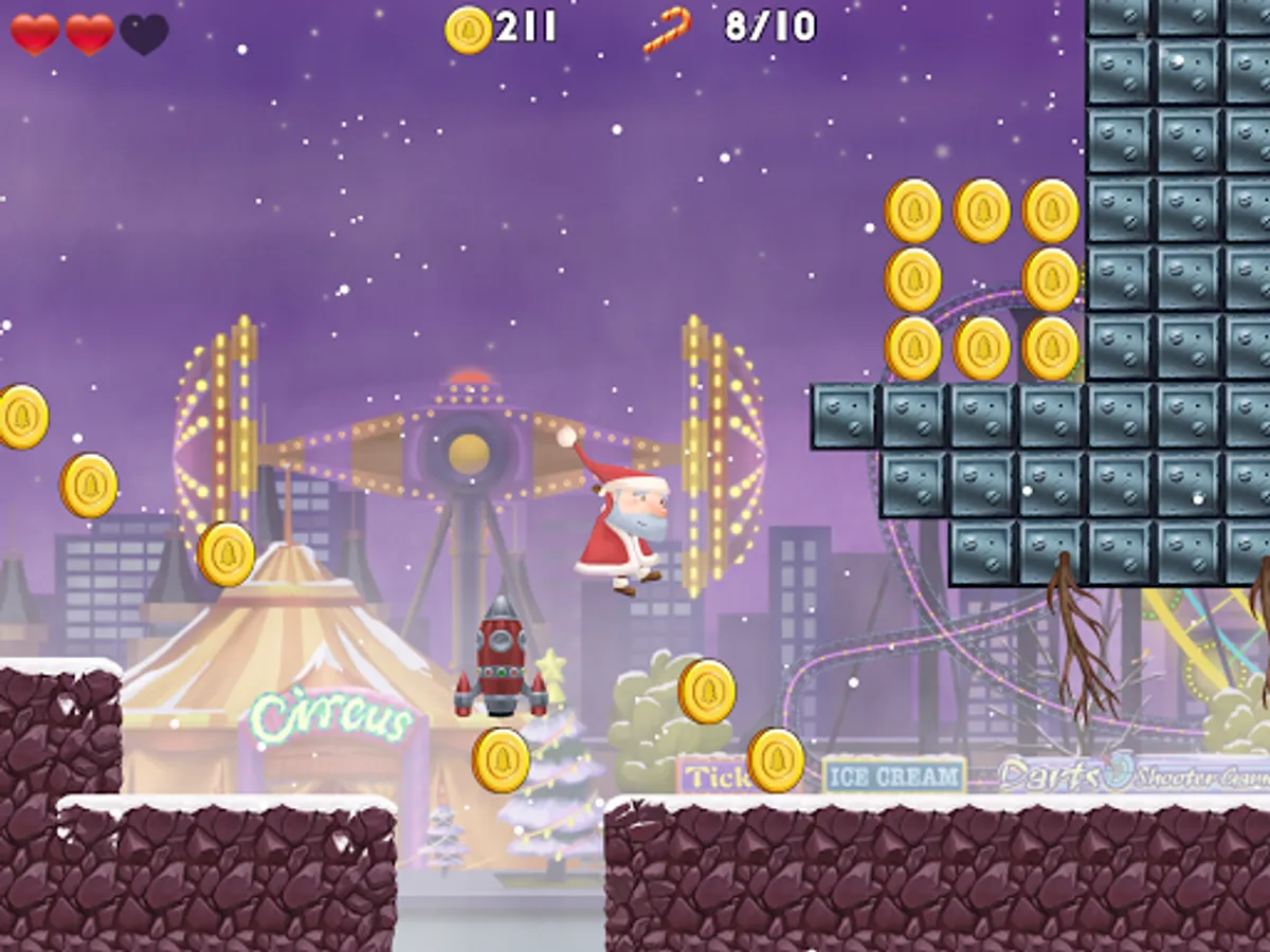 This is a traditional platform game, after finish a level, you can get a gift shard, 3 shards can help Santa recovery a present for a child. There are 180 levels wait for you to challenge.