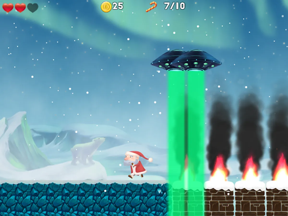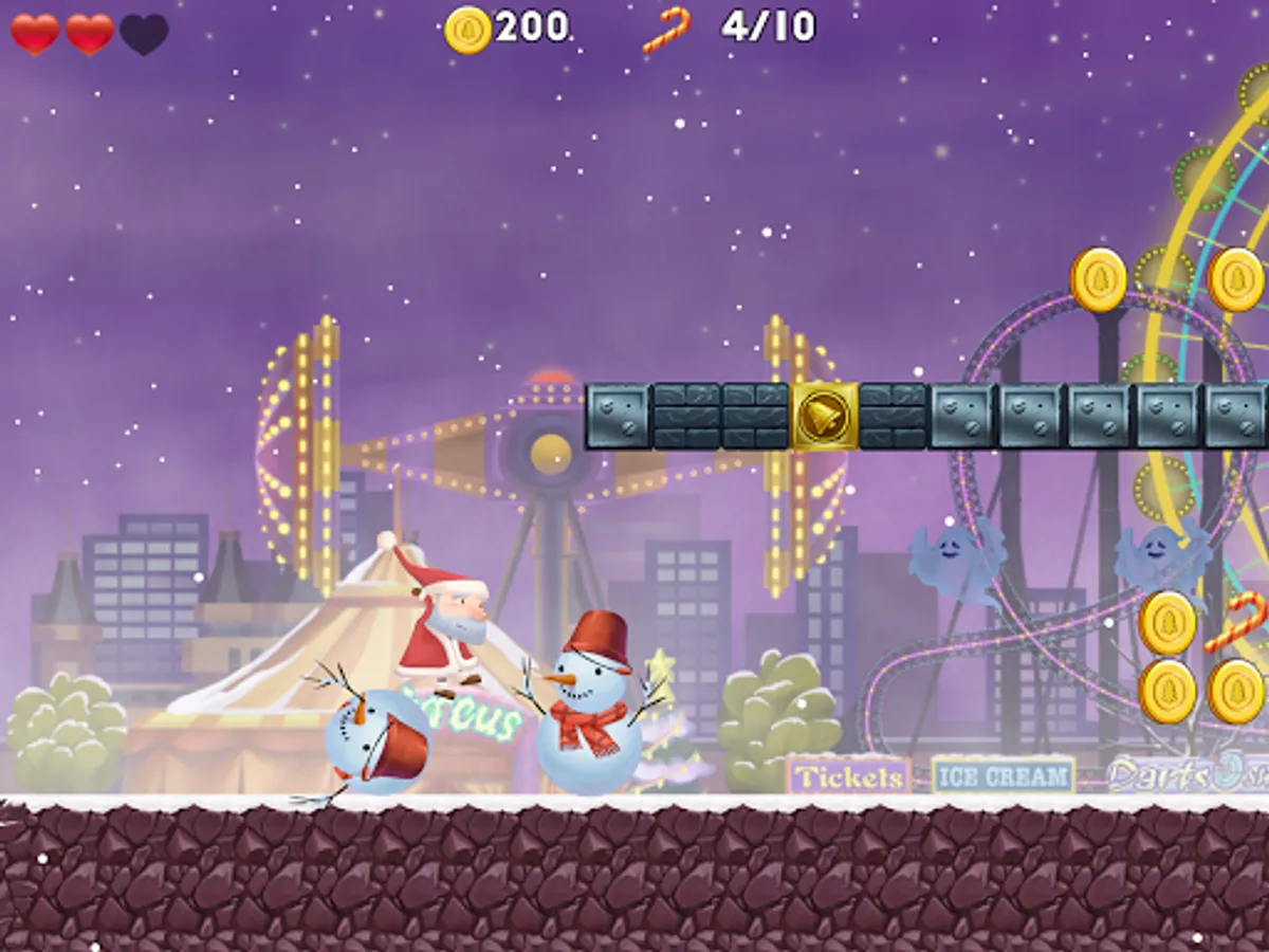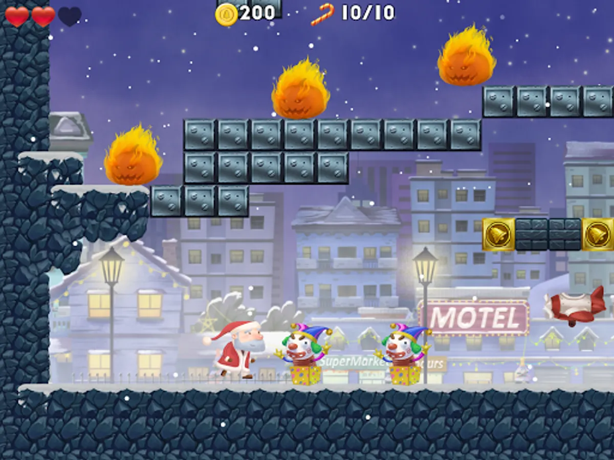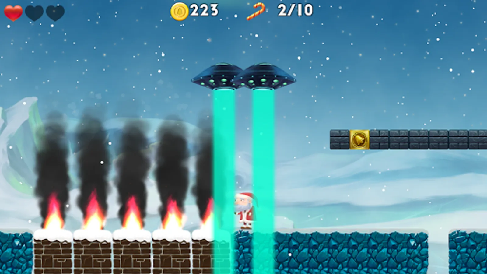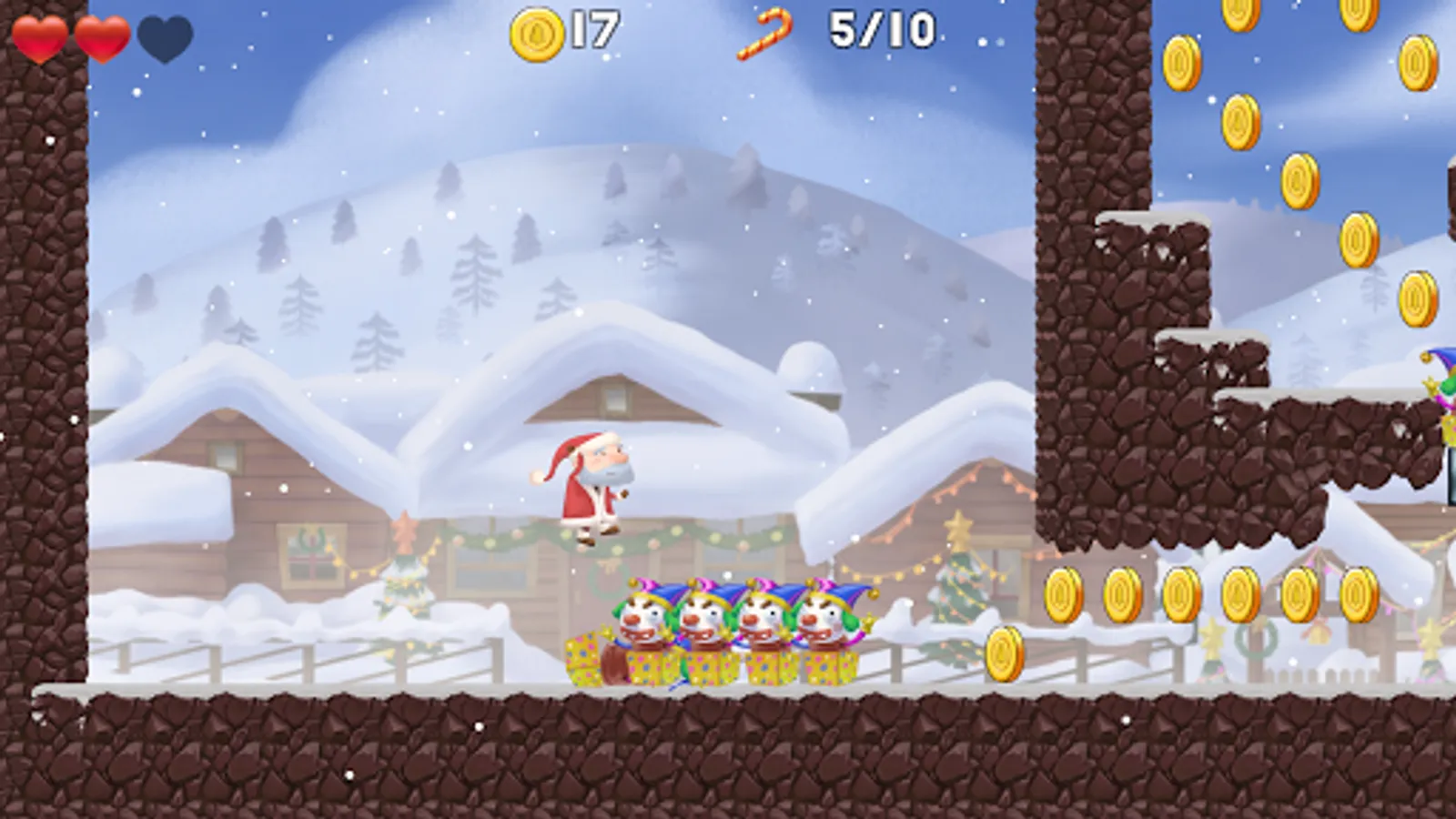 This is a traditional platform game, after finish a level, you can get a gift shard, 3 shards can help Santa recovery a present for a child. There are 180 levels wait for you to challenge.