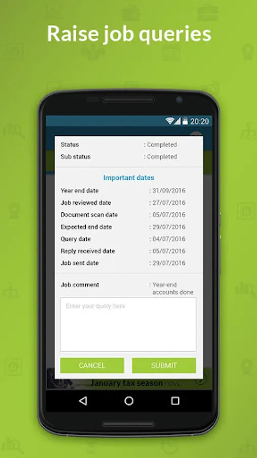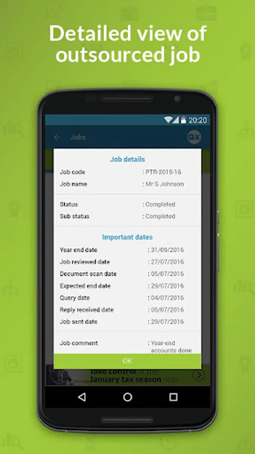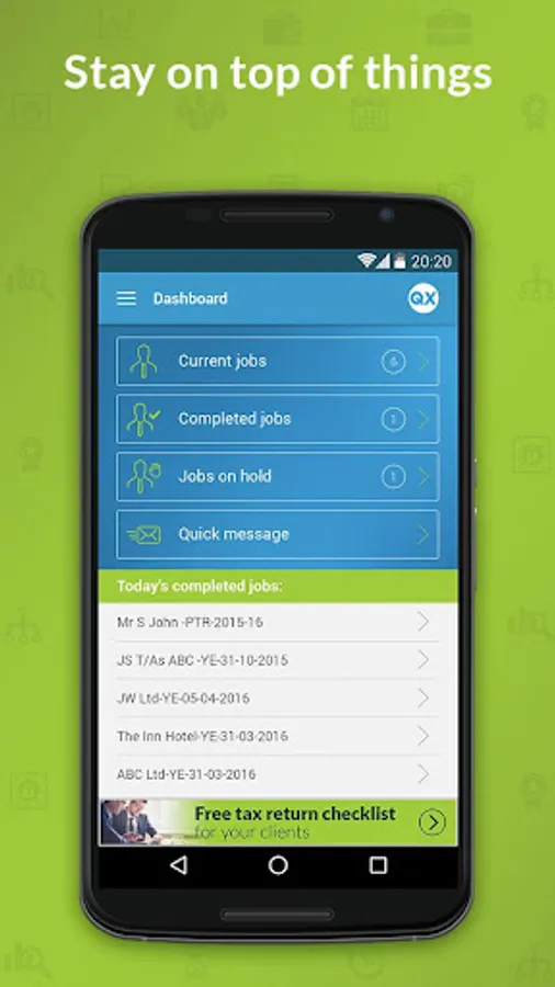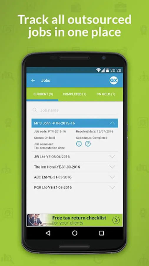 Our app gives our accounting clients a bird’s-eye view of the progress of all their accounting and tax jobs we are working on, whenever and wherever they need to know.