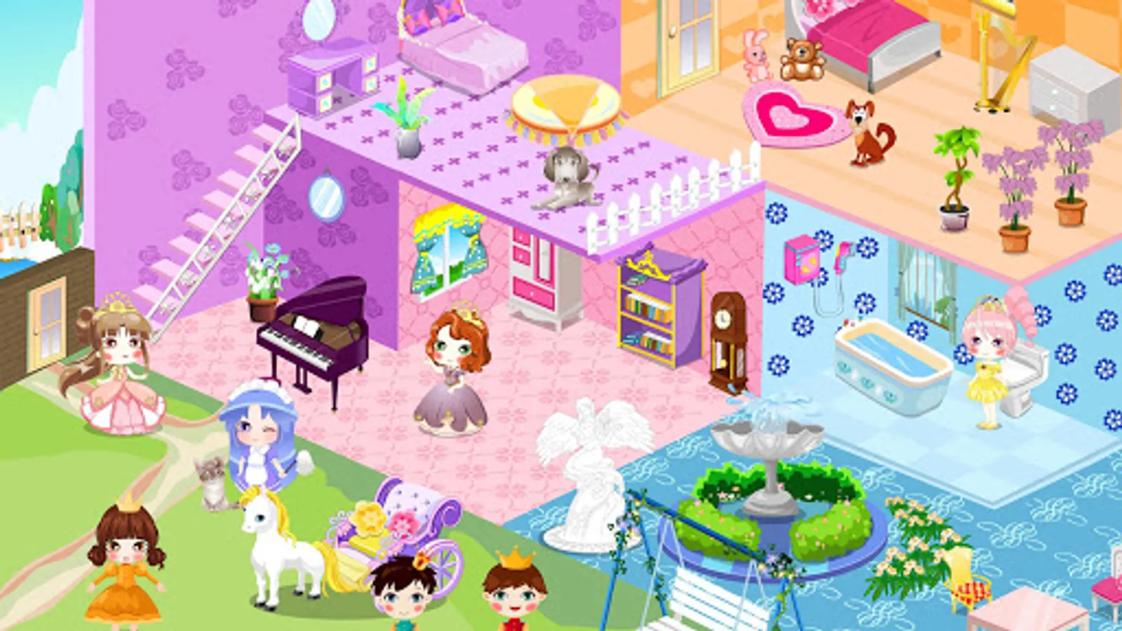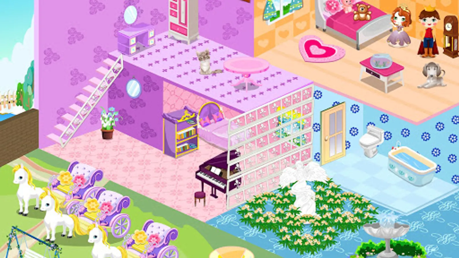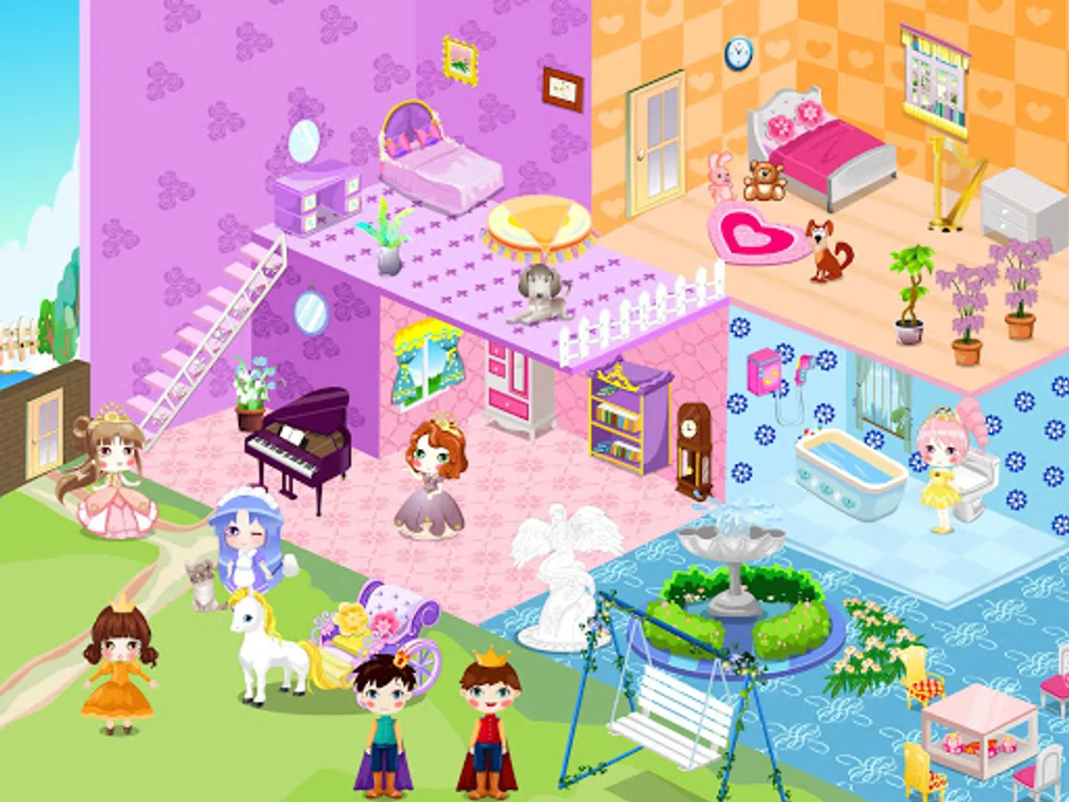 You are now a little princess, you have the opportunity to own a renovated room,you just got a cute doll house. How do you want to decorate the bedroom, kitchen, bathroom, living room and garden? Real Doll House Decoration from now on,Install your favorite look like it arranged the room, There are so many cute furnitures for you to decorate these, nice house depends on your design.rooms as you want.
