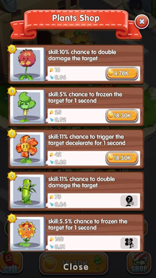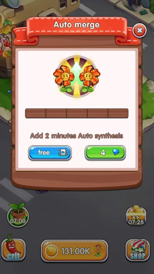 • Merge plants at the same level to create a new powerful plant