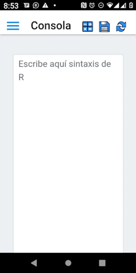 R console for Android, handles spreadsheets, syntax files and imports csv files, allows you to perform all statistical calculations using R syntax. You can perform graphs, linear regression models, logistic regression and any general linear model. You will have from your Smartphone the possibility of performing any hypothesis test available in R.