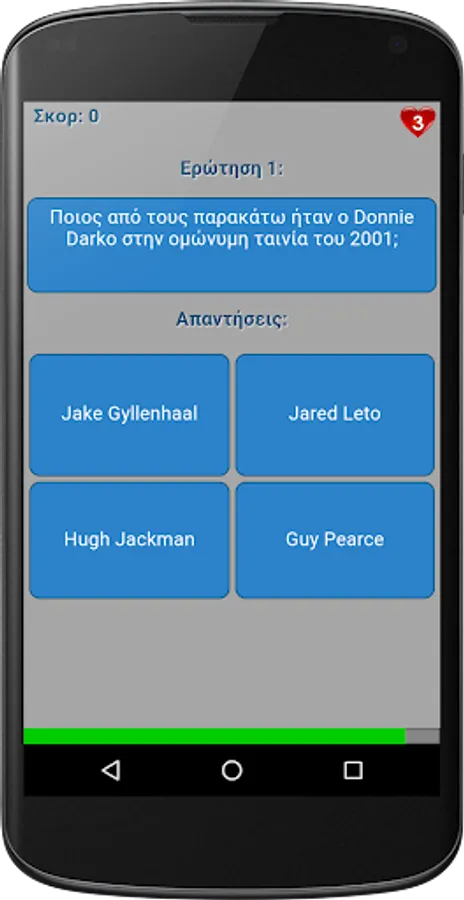 - The user can be informed of the scores has achieved the game for both categories by pressing the "Score" button. Also, the possibility is given to the user to see what is ranked in relation to other users of the quiz by clicking on the "Leaderboard" button. There should just make a simple registration. The user's score coming in the ranking is that of "Marathon" category.