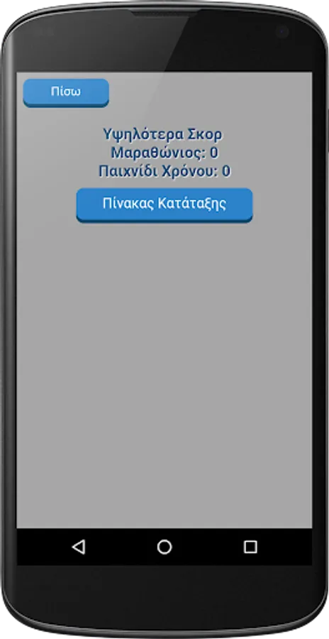 - In the main menu of the game except the buttons "Marathon", "Play Time" and "Score" exists and that controls the sound button and the button "Other". The game sounds are heard where right or wrong answer, and when the time a query runs. Through the "Other" the user is able to communicate by email with the developer, to visit the social media and the web application, and there is also the option to donate for those who want to support this effort.