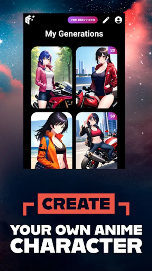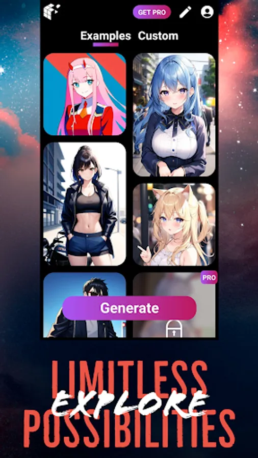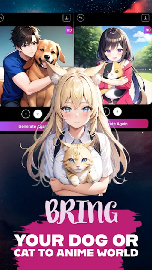 Transform your creativity into stunning anime images with AnimAI - the ultimate anime image generator and AI-powered anime art maker. With just a few taps, our text to image app allows you to create unique anime designs using character design app features, pose and expression customization, and clothing customization options.