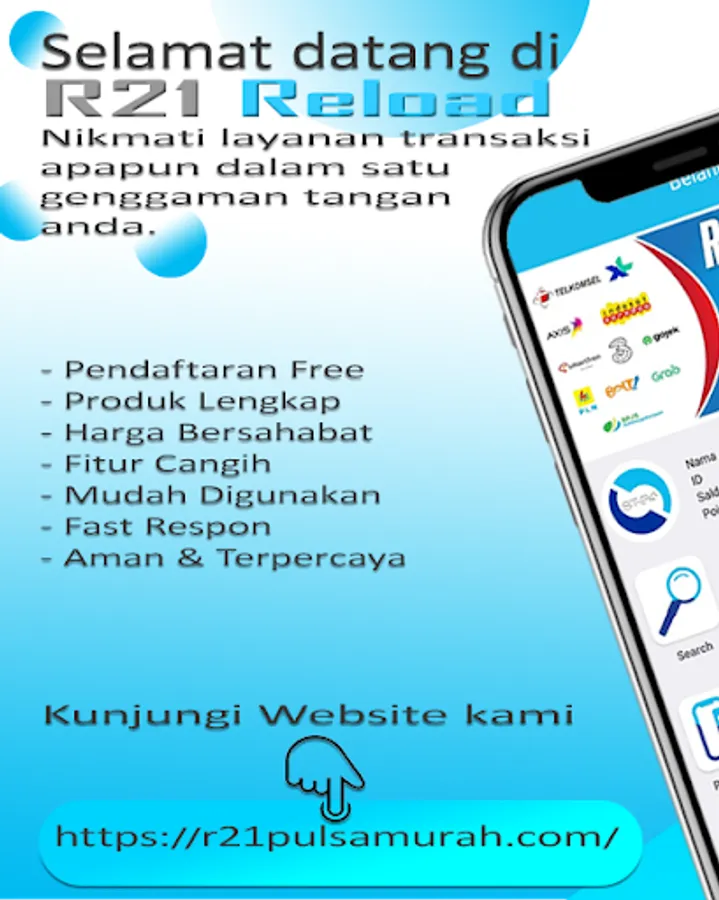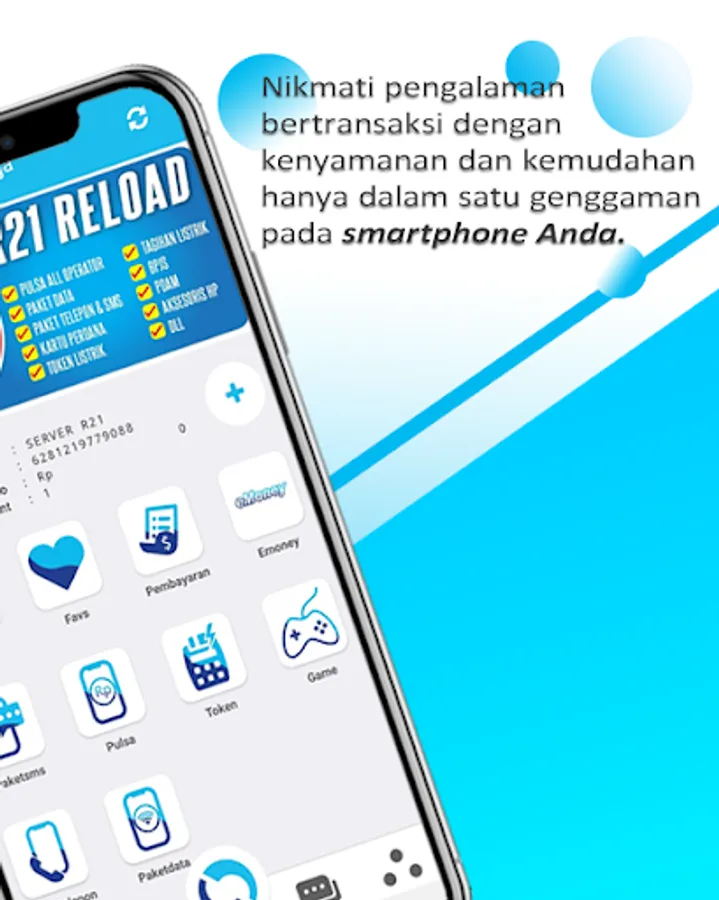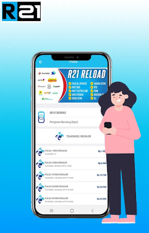 R21 Pulsa adalah aplikasi penyedia layanan pembelian Pulsa,Token PLN,Paket Internet , PPOB, Tiket Perjalanan dan pembayaran digital lainnya.