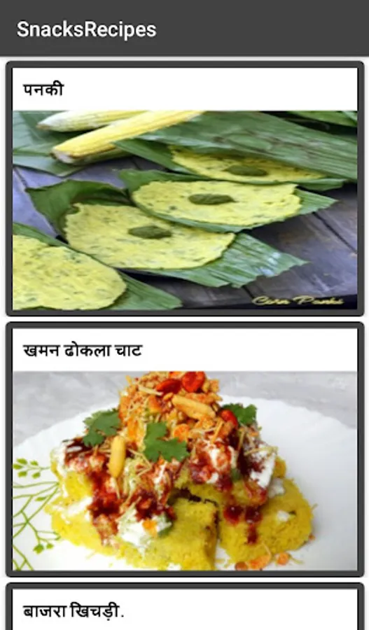 (snacks item) such as pathra, dhokla, and samosa among others; a dish made of whole beans or pulses; a sweet dish or