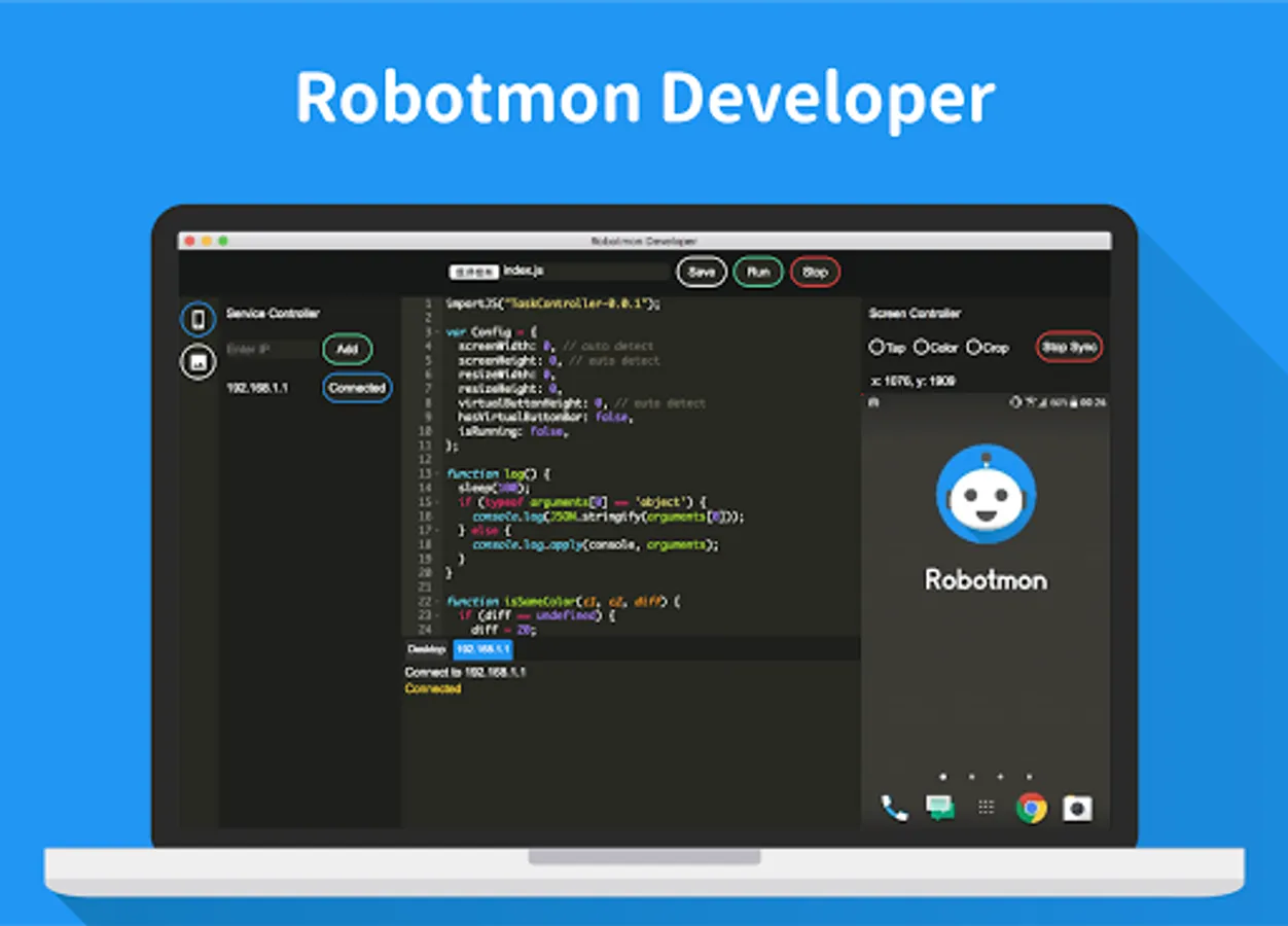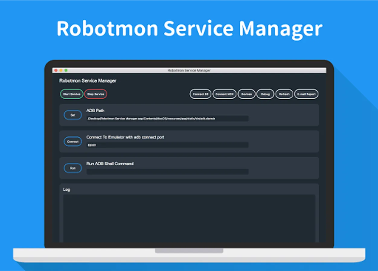 • Connect the phone to PC, download the Robotmon SimpleManager (Windows: http://bit.ly/2I94Qri, Mac: http://bit.ly/2VFu6gV, Linux: http://bit.ly/32Brkus). Latest release information: https://github.com/r2-studio/robotmon-desktop/releases
