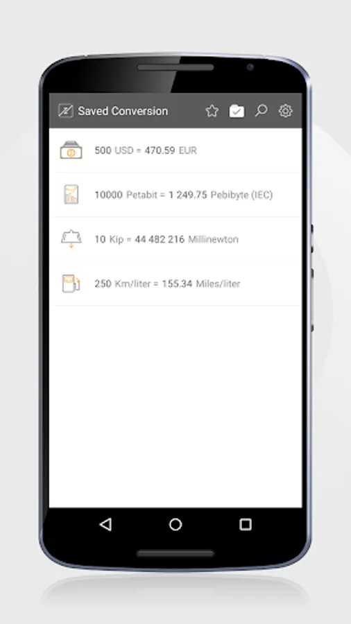 • Saved conversions also saves previous values and you can access them to get the new values with fewest taps