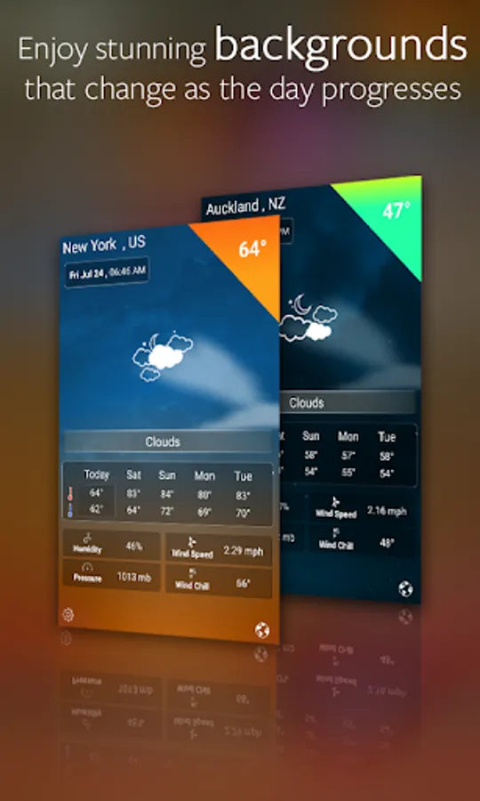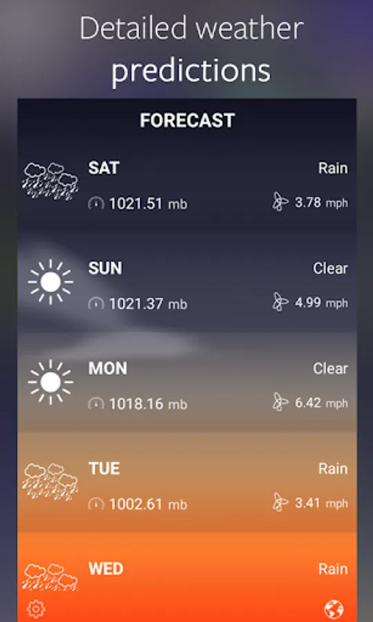 • Gorgeous backgrounds to provide detailed and comprehensive weather forecast for not just the current day, but for the next five days to come