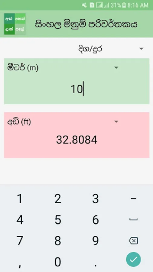 Measurements in Sri Lankan, past and present, can be converted from this App.