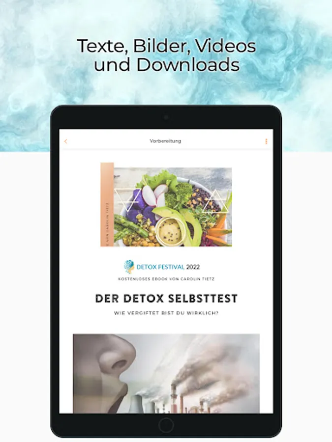 This app will change your life! Detox is not just detox - Get to know professional detox with this app. Save yourself time for expensive self-experiments and learn how to become your own health manager. Get rid of toxic ballast and take charge of your daily cleansing - with ease and joy, pure enjoyment of life and appreciation for your body. You will receive recipes in alignment with your 5 elements, unique knowledge of visible and invisible poisons and the antidotes to how to properly use supplements to cleanse the body and mind, and how to break free from toxic self-manipulation. Integrate body and mind detox into your everyday life with this app and find out which sports exercises make sense to stimulate your detoxification organs. Everything in this app revolves around these 5Rs - the keys to your health (intestines, microflora, cardiovascular system, connective tissue, pineal gland). Included are online courses with a number of video lessons, ebooks, audio books, podcasts, meditations, webinars and instructions for inner balance with your elements (established psychology). The content of this app is based on the knowledge of the founder Carolin Tietz from over 20 years in the healthcare sector (conventional medicine and naturopathy, own illness and 10 years of own practice)
