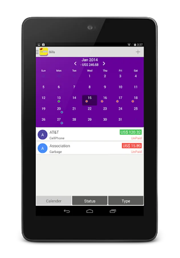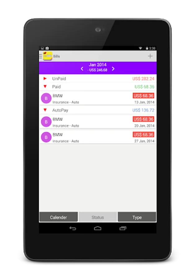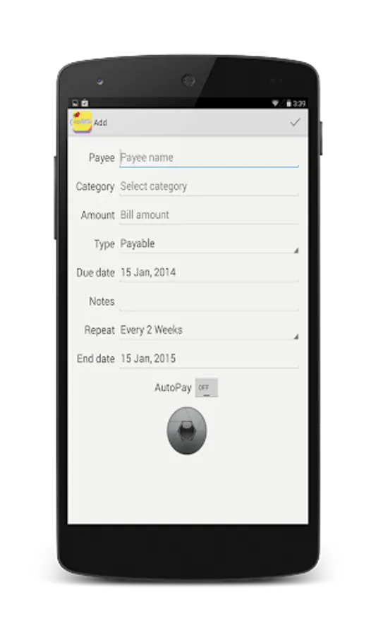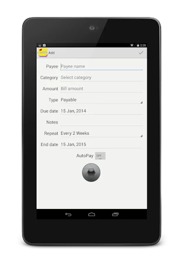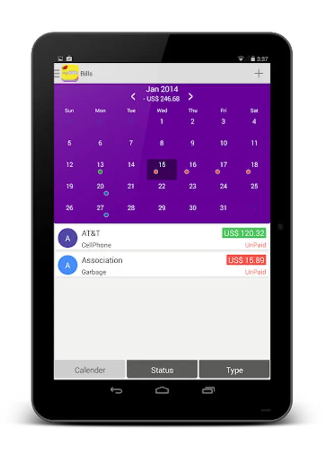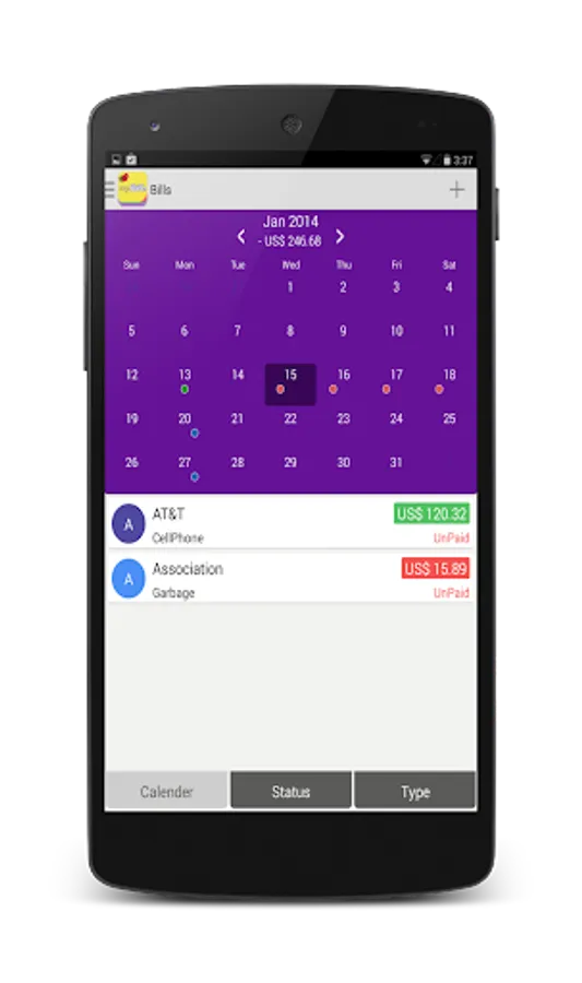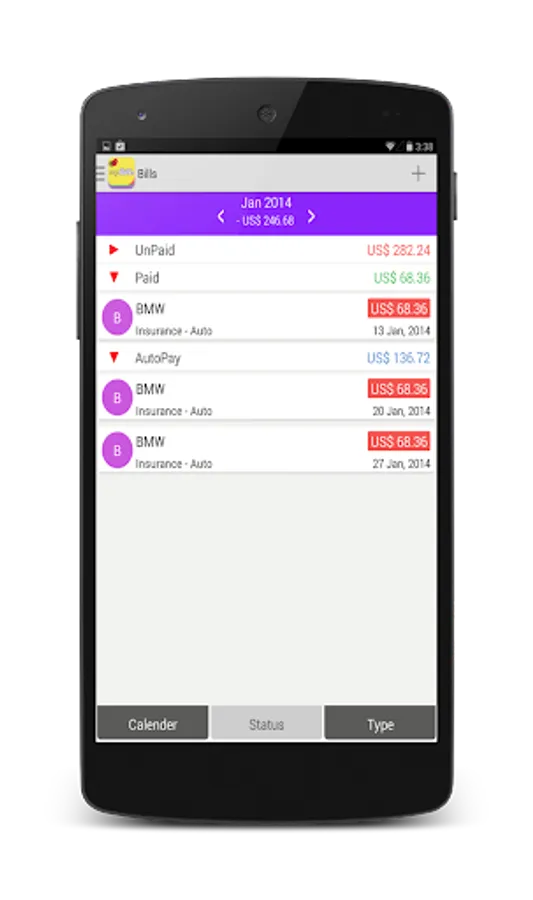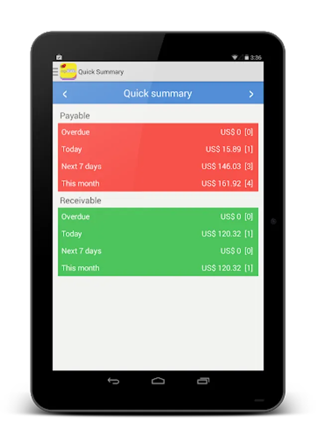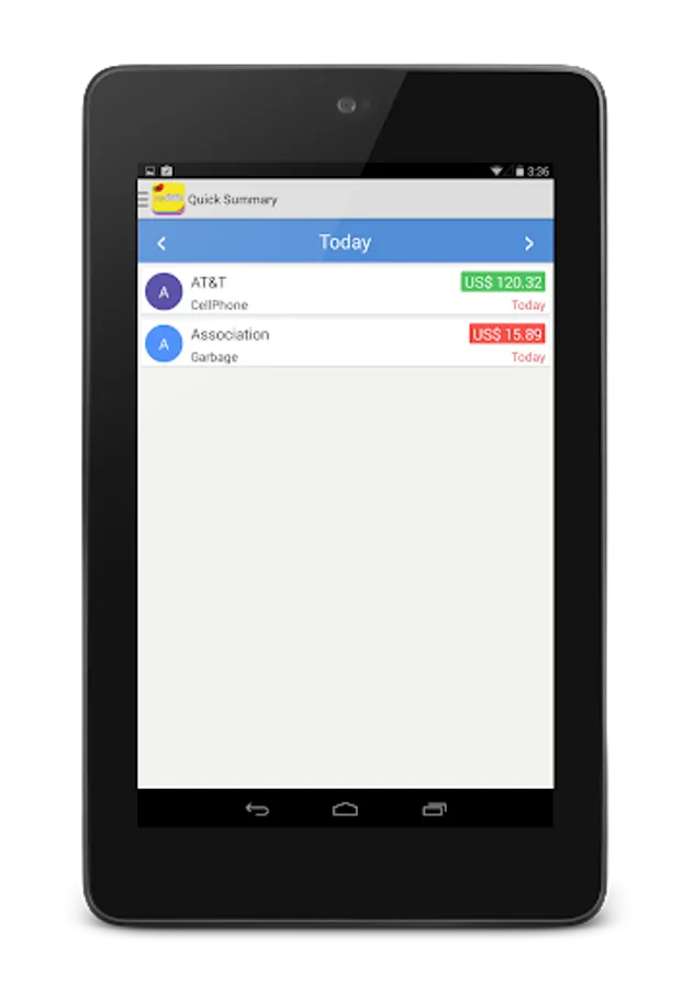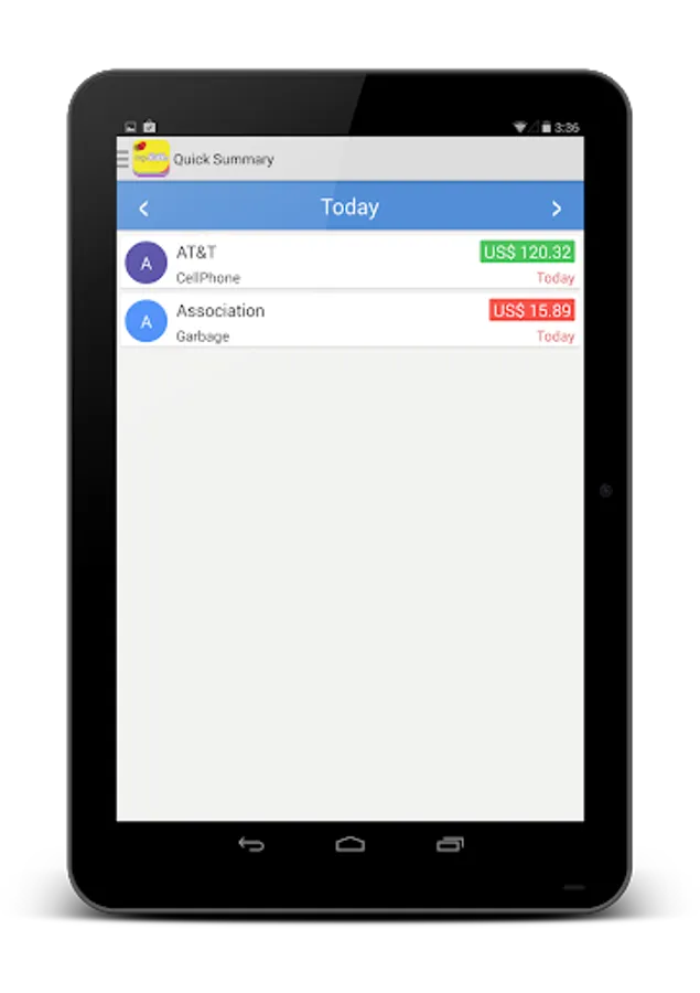 You no longer have to pay late fee. Get "myBills" to keep track of your bills due dates and avoid late fee. Download "my Bills" now and get daily reminders of Monthly or Weekly bills."myBills" notify you daily about upcoming Monthly or Weekly bills. Now you don't have to worry about forgetting to pay your bills while you go about your busy schedule! "myBills " saves your time in checking unpaid bills by providing quick summary of unpaid bills in home screen