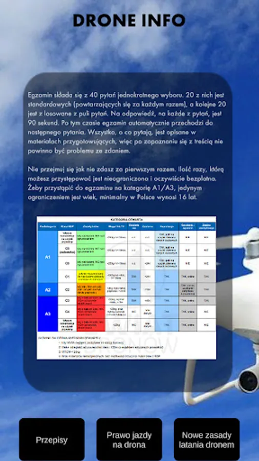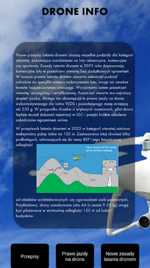 Aplikacja pokazuje obecne przepisy dotyczace latania dronem