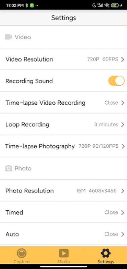 This app allows you to easily set all the functions that your Actioncam 4s Plus has on your phone and control the recording, especially in moments where you can't adjust the settings on the camera itself . These include photo and video mode.