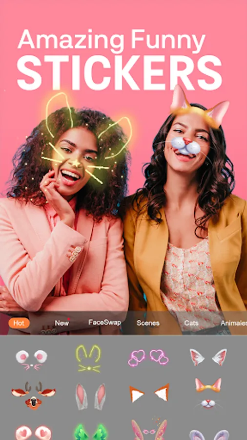 Beauty photo editor and filters for pictures ask you to add funny faces with fun stickers and snap effect.