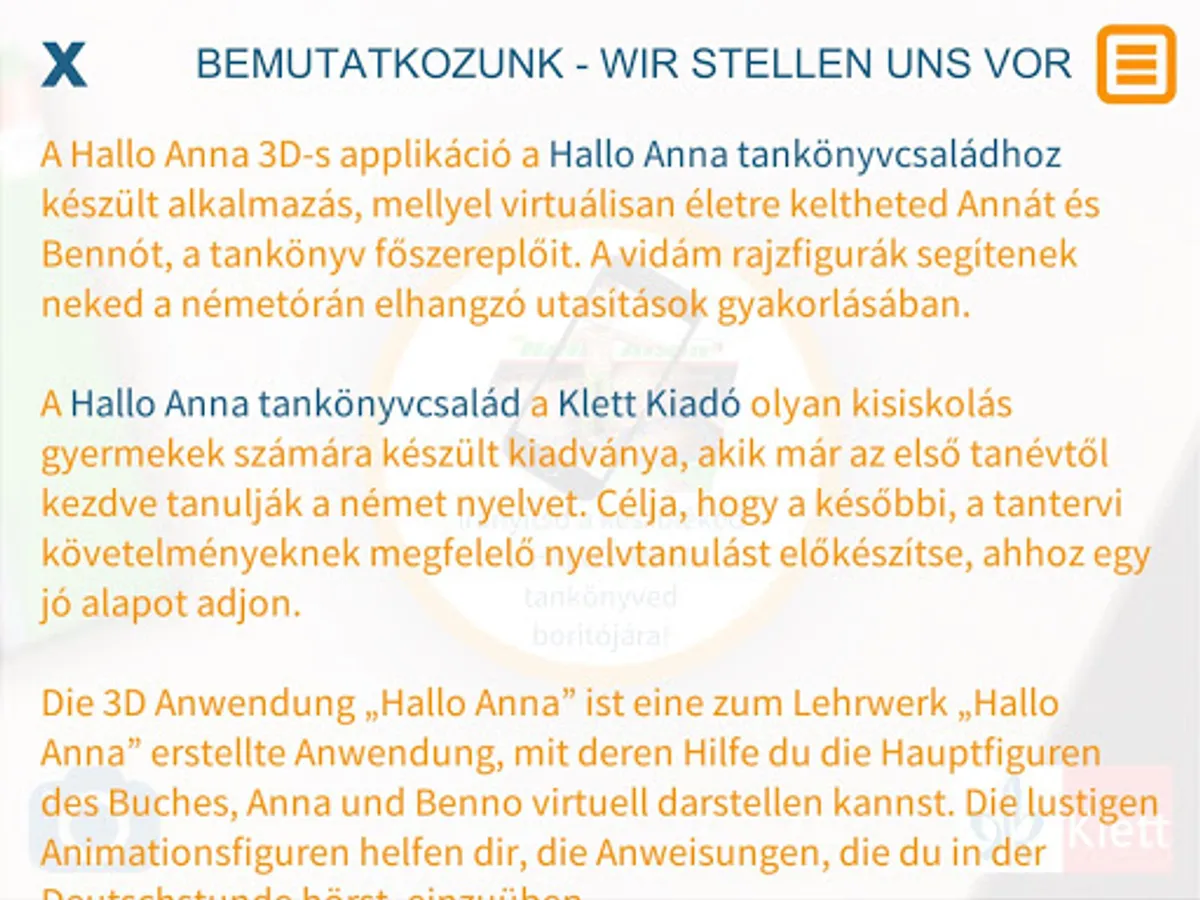 The application of the 3D Hallo Anna Klett Publishers, textbook Hallo Anna's family