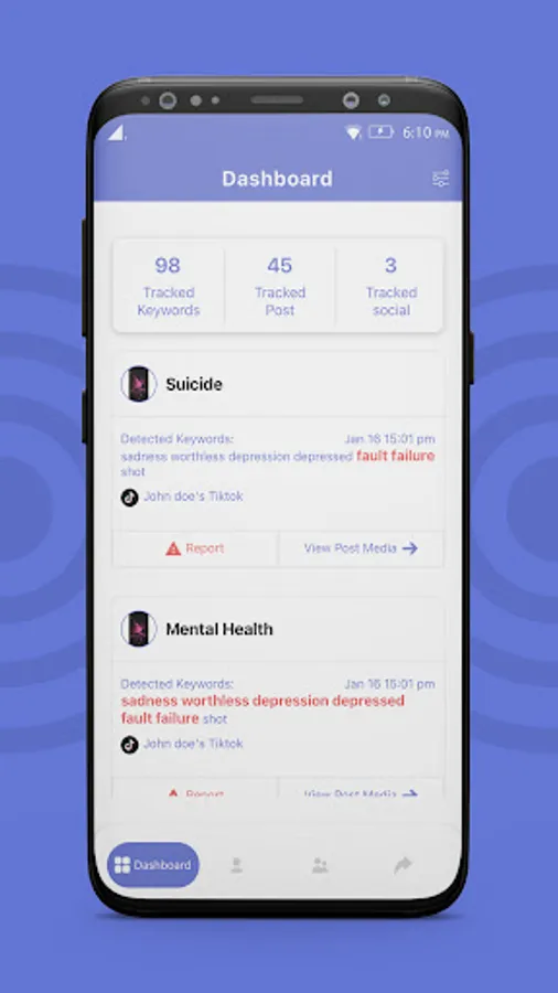 RAADR, a parental monitoring and student reporting social media application, allows parents to protect children by using real time monitoring across most major social media platforms to report cyberbullying, suicidal content, and harmful behavior.