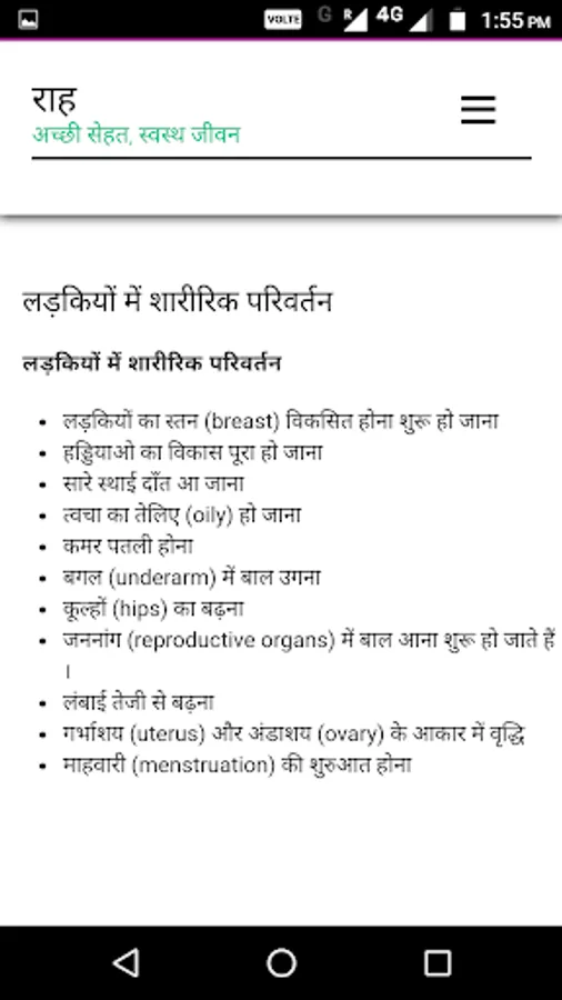 So, We’ve worked towards fulfilling the said purpose through this app which contains information regarding all this and will certainly be helpful to young adults and adolescents especially girls.