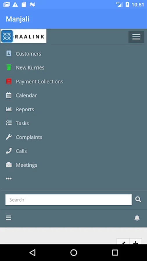 Customer Relationship Management Tool for Manjali Jewellers designed and published by RAALINK Innovations Private Ltd. The application consists of service management modules.