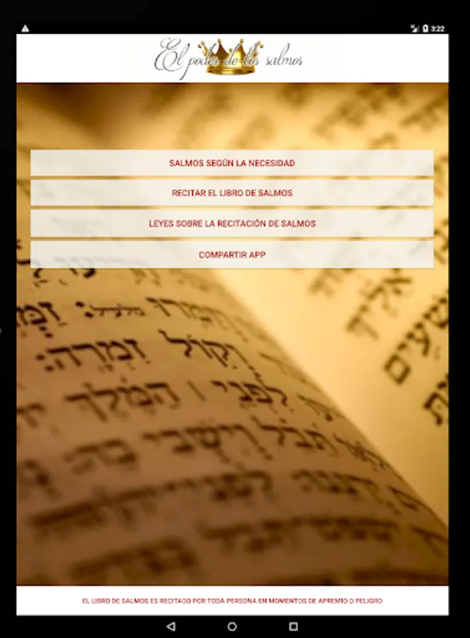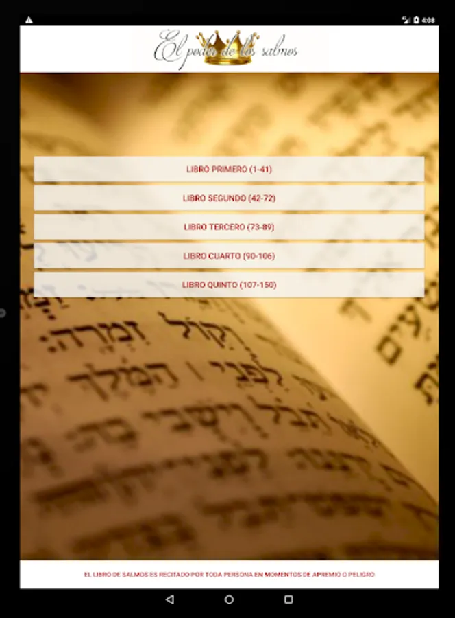 Version without ads with psalms according to the occasion and the book of complete psalms also to recite daily.