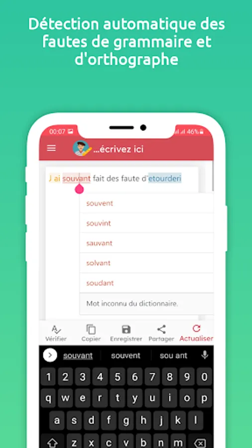 - Share the corrected text (Email, SMS, Twitter, Facebook messenger, other apps.)