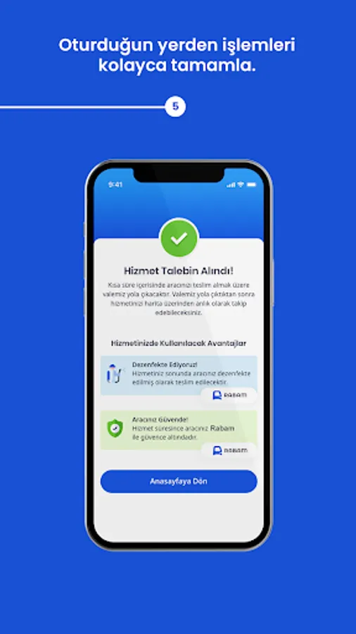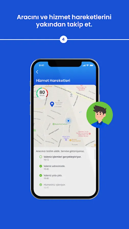 Live Vehicle Tracking: Our follow-up process, which starts with valet tracking after you create your service, continues after you receive your vehicle. “Where is my vehicle? How many kilometers does it travel? At what stage of operation is it now?” Follow the answers to all these questions instantly in our application. View the entire service process in the most transparent way.