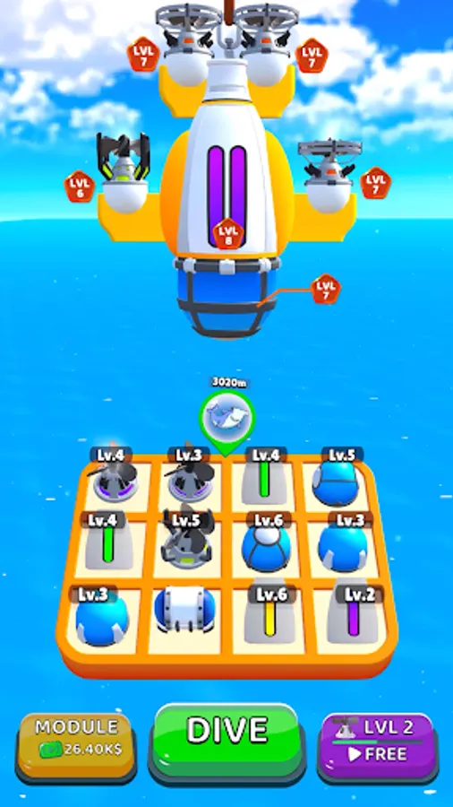 Upgrade your submarine and dive deeper, unlocking new creatures and ships to explore. With every discovery, your submarine will upgrade and improve your chances of uncovering rare treasures.