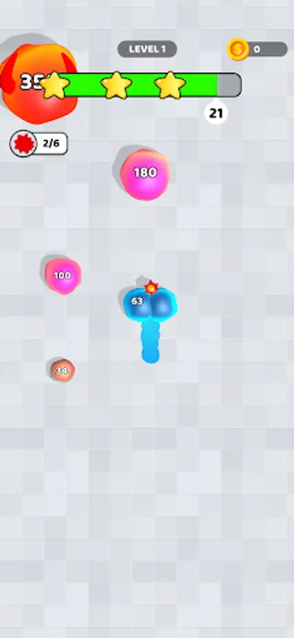 This is a game where you play with a slime and you can eat the other slimes! If the other slime is bigger than you it can eat you too! Drag to move and eat them all!